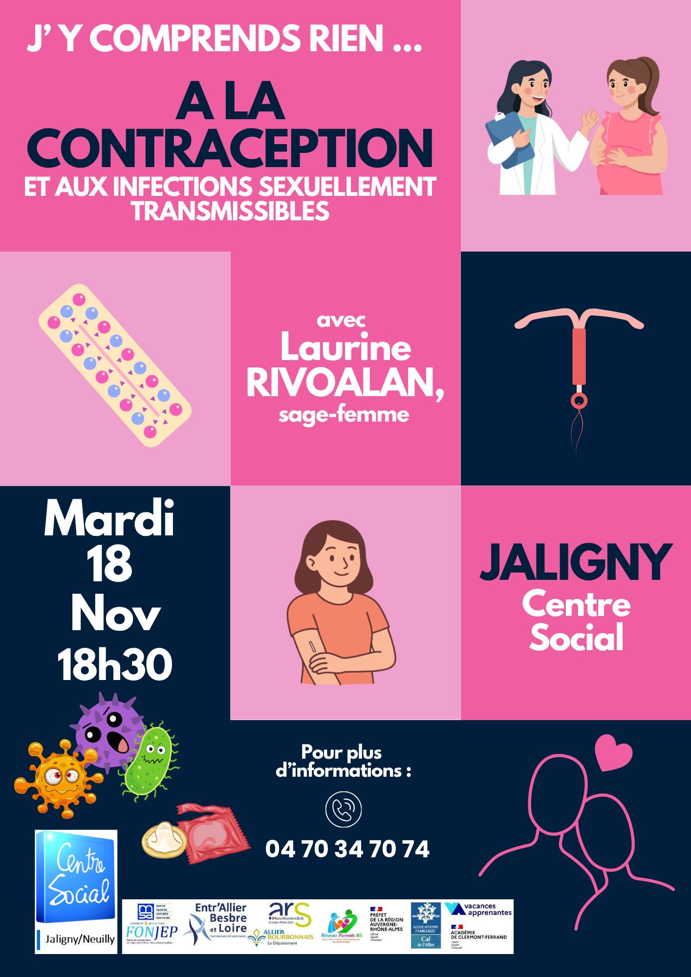 Le centre social de JALIGNY organise le mardi 18 novembre à 18h30 une soirée "J'y comprends rien ... !! A la contraception et aux infections sexuellement transmissibles"